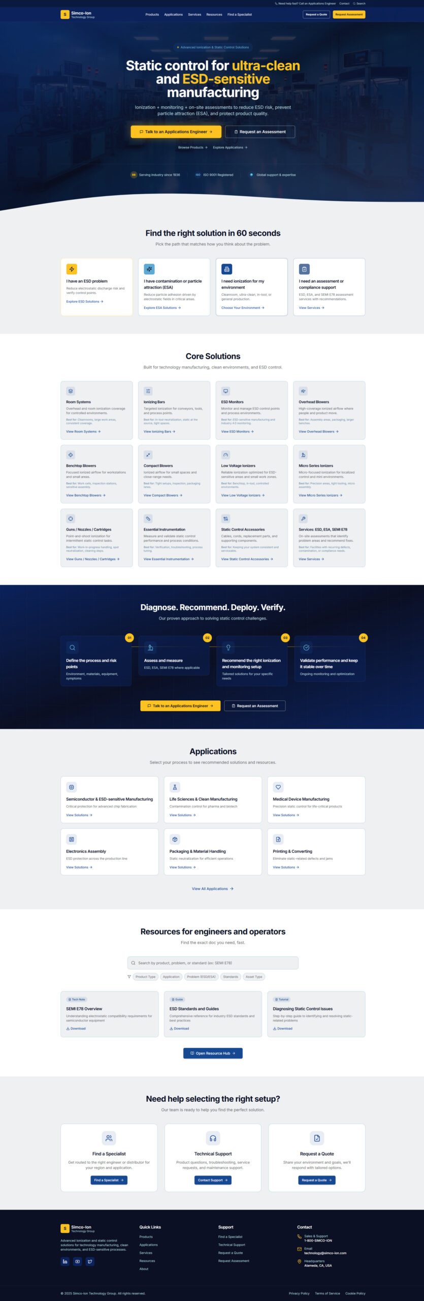 Structured the site around solution categories, a quick selector, and stronger CTAs to help engineers choose faster.